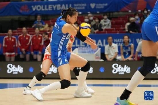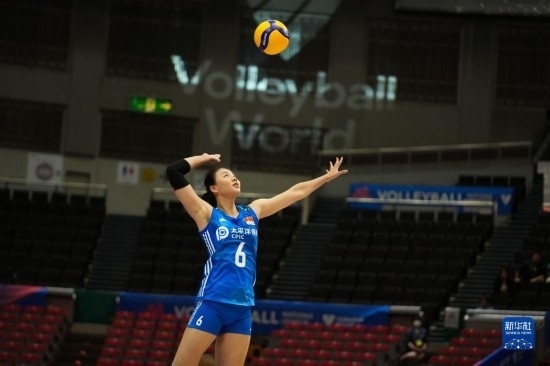 6月2日,中國隊球員李盈瑩在比賽中傳球。新華社記者 張笑宇 攝
