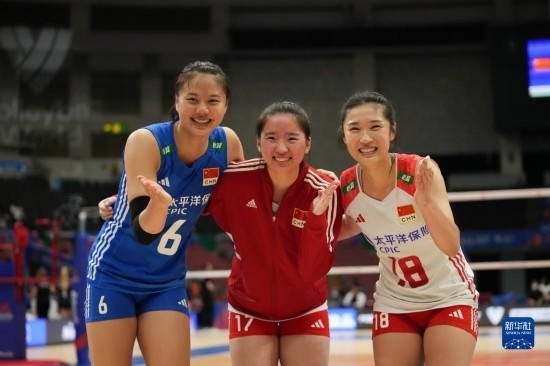 當日,在日本名古屋舉行的2023世界女排聯賽分站賽中,中國隊以3比0戰(zhàn)勝德國隊。
