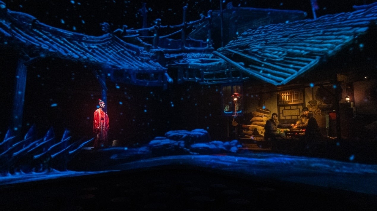 只有紅樓夢·戲劇幻城還將“亦真亦假、榫卯拼接、虛實留白、輪回轉(zhuǎn)世”等中國式哲思與美學(xué)理念,運用到戲劇創(chuàng)作與景觀設(shè)計中。從幻城入口處16扇風(fēng)格迥異的“中國門”開始,到幻城中隨處可見的“留白”、“古建”與“方塊字”,在如迷宮幻境一般的建筑空間中,創(chuàng)新式的用最中國的方式講述中國的故事。