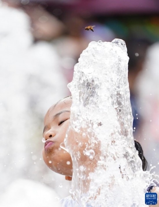 當(dāng)日7時,北京市氣象臺升級發(fā)布高溫紅色預(yù)警信號,預(yù)計6月23日至25日北京市高溫天氣仍將持續(xù)。不少市民來到泳池、水上樂園和戶外噴泉,戲水覓清涼。
