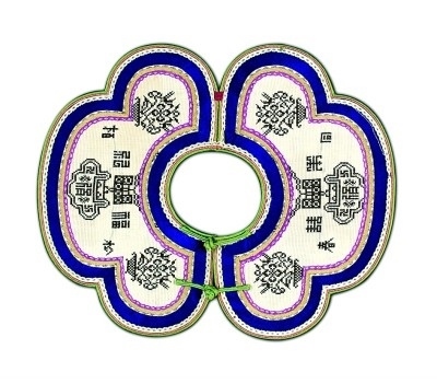 依據(jù)工藝、地域、民族的不同,織繡印染單元分為織繡、印染和少數(shù)民族工藝三類(lèi),品種豐富,工藝精美,兼顧手作與機(jī)制。在織繡中,南京云錦織造復(fù)雜,圖案華美;五彩繽紛的成都蜀錦以染色熟絲織造,質(zhì)地堅(jiān)韌;蘇州漳緞以漳絨織造,富麗華貴;蘇州緙絲則采用通經(jīng)斷緯工藝與博古圖案,極盡工巧。刺繡展品以繡有吉祥圖案的日用品為主,如山西“打子繡錢(qián)袋”繡獅子滾繡球圖案,寓意好事不到頭;蘇州“金地拉鎖繡扇套”繡孔雀開(kāi)屏與鳳求凰圖案,祈愿美好愛(ài)情。藍(lán)印花布產(chǎn)地多,應(yīng)用廣,多采用吉祥圖案,既有祈愿幼兒健康成長(zhǎng)的“虎戲五毒紋肚兜”“麒麟送子圖圍嘴”,亦有寓意平安富貴的“牡丹花瓶紋門(mén)簾”,還有“勞動(dòng)生產(chǎn)”雙喜藍(lán)印花布褥面,倡導(dǎo)“女紡織家存千尺布,男耕田倉(cāng)有萬(wàn)石糧”。在少數(shù)民族工藝品中,“苗族刺繡花邊百褶裙”以黑色土布飾五彩裙擺,展現(xiàn)著苗族婦女“善歌舞,巧織繡”的傳統(tǒng)。