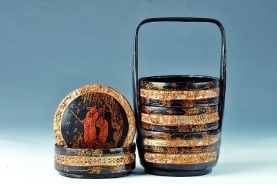工藝技法與地方名品是漆器展示的兩個(gè)脈絡(luò),其中既有日用品,亦有陳設(shè)品。福建福州脫胎漆器如“鳳凰牡丹紋瓶”不僅輕巧靈動(dòng),且圖案精美,色彩豐富。北京漆器以雕漆見(jiàn)長(zhǎng),造型古樸,裝飾典雅。江蘇揚(yáng)州漆器兼具螺鈿與雕漆工藝,裝飾頗有文人趣味。福建永春郭振盛所造“金漆彩繪提盒”富有裝飾性,多用于迎神祭祖、民間嫁娶和走親訪友。四川成都“推光漆果盒”以黑地博古圖案表達(dá)“壽考神仙”之題,盒內(nèi)分兩圈九格,分髤沉穩(wěn)五色,既實(shí)用又美觀。四川涼山彝族漆器則以木為胎,質(zhì)樸粗獷,多髹紅、黃、黑三色,分別象征著勇敢、光明與莊重。在漆器單元的“彝族漆器圖案內(nèi)涵”小專(zhuān)題中,觀眾從自然、動(dòng)植物、生產(chǎn)生活等多個(gè)類(lèi)別的圖案中得以了解彝族人民對(duì)自然的崇拜與敬畏。