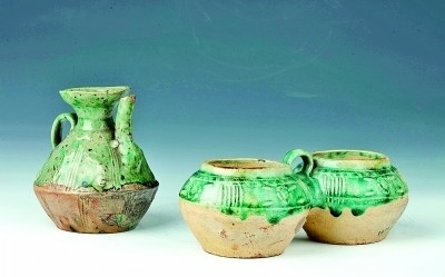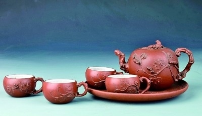 在陶瓷單元,來(lái)自全國(guó)七個(gè)產(chǎn)區(qū)的陶器、瓷器和陶瓷雕塑在材料、工藝、功能、題材、造型、裝飾等方面各具特色。江蘇宜興紫砂陶器因透氣性能優(yōu)良,以茶具、花盆聞名。清初名家陳孟瀛的“紫砂水仙盆”造型質(zhì)樸,書(shū)畫(huà)裝飾清新雅致;現(xiàn)代名家朱可心的茶具以松鼠葡萄為題材,寓意多子多福、豐收吉祥。云南建水紫陶多以不同顏色的陶泥刻填書(shū)畫(huà),形成具有地方特色的“殘?zhí)毖b飾,文人氣息濃厚,如向逢春的“紫陶刻填殘?zhí)B(niǎo)紋瓶”,丁吉三制陶、馬吉生作畫(huà)、孟松題詩(shī)的“紫陶雙耳四方瓶”等。湖南銅官陶器以綠色、褐色釉為主,多為雙連調(diào)味罐、水壺等日用器皿。安徽界首陶器的剔地留花工藝和武戲“刀馬人”裝飾獨(dú)具特色,名家以盧山義為代表。江西景德鎮(zhèn)是傳統(tǒng)瓷區(qū),產(chǎn)量大,行銷(xiāo)廣,青瓷、青花、古彩等品種豐富,彩繪、浮雕等工藝精湛,如“青花龍紋盤(pán)”以鏤雕透光的“玲瓏眼”工藝為特色;“青瓷浮雕一品當(dāng)朝紋盤(pán)”繪仙鶴立于潮頭,寓意聲名顯赫;名家王步的“青花白菜圖盤(pán)”以中國(guó)傳統(tǒng)繪畫(huà)兼工帶寫(xiě)的手法繪制白菜形象,既富生活雅趣,又寓發(fā)財(cái)之意。江西美術(shù)工作室則以現(xiàn)實(shí)題材、寫(xiě)實(shí)風(fēng)格為特色,曾龍升創(chuàng)作的瓷塑“牧童牛上比英雄”傳遞出“老幼互相忙生產(chǎn),要為祖國(guó)立大功”的時(shí)代之聲。福建德化白瓷以瓷塑見(jiàn)長(zhǎng),傳統(tǒng)題材為主。廣東石灣陶器則以陶塑見(jiàn)長(zhǎng),題材多具自然情趣與生活氣息,亦有表現(xiàn)時(shí)代題材的作品。