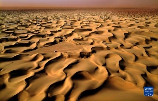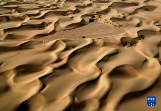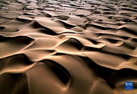 這是9月7日在新疆喀什地區(qū)麥蓋提縣N39°沙漠旅游景區(qū)拍攝的沙漠風光(無人機照片)。
