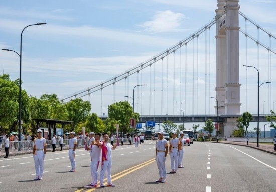 杭州第19屆亞運(yùn)會(huì)舟山站火炬?zhèn)鬟f專項(xiàng)組常務(wù)副組長李進(jìn)城介紹,整個(gè)線路全程融入了海、港、船、橋等多種海洋元素,通過現(xiàn)代與歷史的交錯(cuò)融合、文旅味與山海味的交相輝映,全方位展現(xiàn)了“海上花園城 自由貿(mào)易港”的大美場景。
