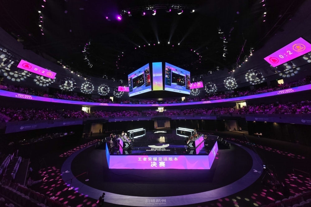 這是在杭州電競中心拍攝的“韻味杭州”電子競技全國邀請賽王者榮耀亞運(yùn)版決賽現(xiàn)場(2023年5月21日攝)。新華社記者 黃宗治 攝