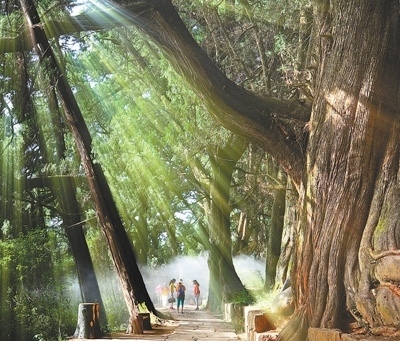 漫步在翠云廊蜿蜒的古道石板路上,松柏木的清香縈繞鼻尖,縷縷陽(yáng)光穿透樹蔭,側(cè)耳傾聽風(fēng)拂樹干的聲音——一步一行中,收獲一段愜意時(shí)光。