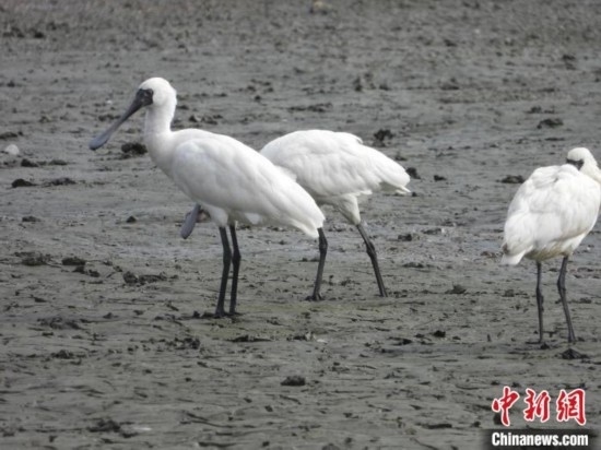 黑臉琵鷺在淺灘覓食(資料圖)。廣東省林業(yè)局 供圖