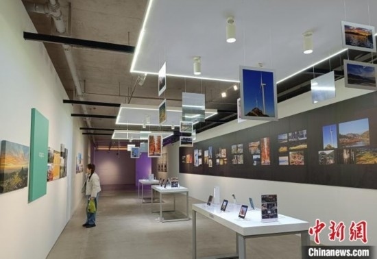 參觀者在手機(jī)攝影單元展區(qū)欣賞作品。中新網(wǎng)記者 鄧霞 攝