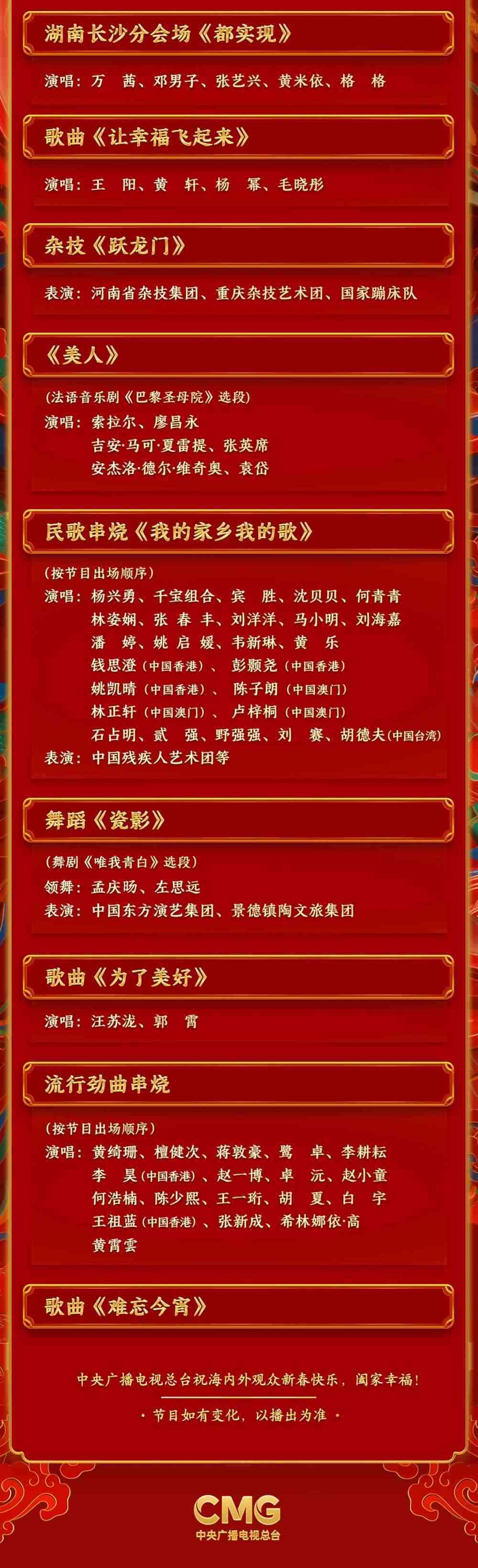春滿中華,福到萬家。中央廣播電視總臺(tái)《2024年春節(jié)聯(lián)歡晚會(huì)》節(jié)目單正式發(fā)布。