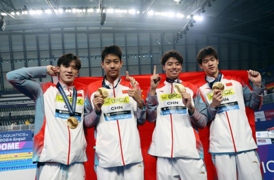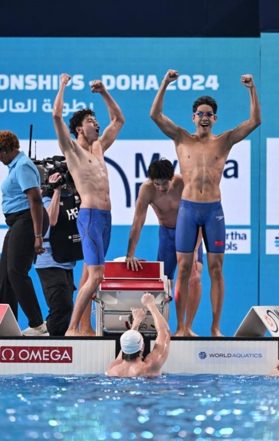 11日,中國農(nóng)歷甲辰龍年大年初二,多哈世界游泳錦標(biāo)賽游泳項(xiàng)目第一個(gè)比賽日,潘展樂和隊(duì)友季新杰、張展碩、王浩宇在男子4×100米自由泳接力決賽中以3分11秒08贏得金牌,為中國男子游泳創(chuàng)造歷史!中國游泳此前還從未獲得過世錦賽或者奧運(yùn)會(huì)的男子接力冠軍。