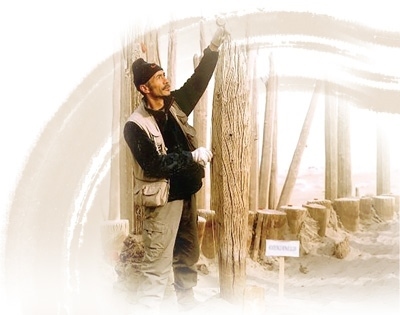 伊弟利斯在考古現(xiàn)場對一個(gè)胡楊立柱進(jìn)行測量。