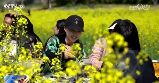 在宜昌市夷陵區(qū),這片油菜花田依山傍水,村居散落其中,構(gòu)成一幅優(yōu)美的田園畫卷。中午時(shí)分,一場(chǎng)小型音樂會(huì)在油菜花田中拉開帷幕,旋律與花海邂逅,如同大珠小珠落玉盤,叮叮當(dāng)當(dāng),又如泉水叮咚般悅耳。游客置身其間,吃著火鍋、品著咖啡,一切煩擾都被洗滌殆盡。