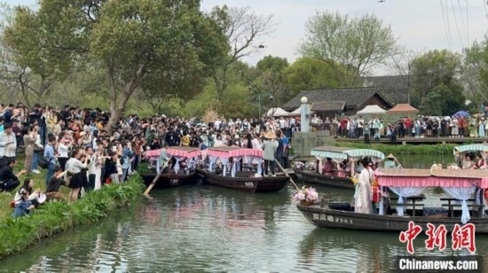 為了給游客提供更多元化的傳統(tǒng)文化體驗,此次花朝節(jié)期間,游客除了入園踏春賞花外,還可以拍攝綠堤上的美陳展示、看三深大會堂里的漫畫展、逛蔣村慢生活街區(qū)的文創(chuàng)市集和河渚街的花朝市集、體驗搖櫓船上的“宋韻花朝”套餐等,更可以在每個周末及節(jié)假日下午,與春天代言人“賣花郎”互動、跟著美麗的花神巡游、參與西溪水鄉(xiāng)婚禮互動表演,解鎖春日限定的浪漫。(王題題)