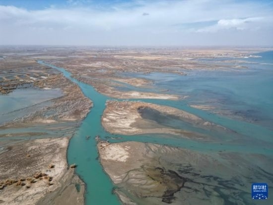 這是3月24日拍攝的新疆博斯騰湖景區(qū)(無人機(jī)照片)。