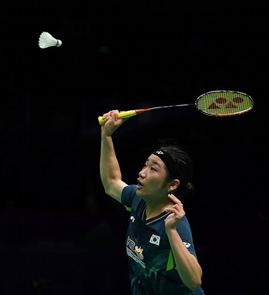 5月3日,韓國隊選手安洗瑩在女單比賽中回球。新華社記者 侯昭康 攝