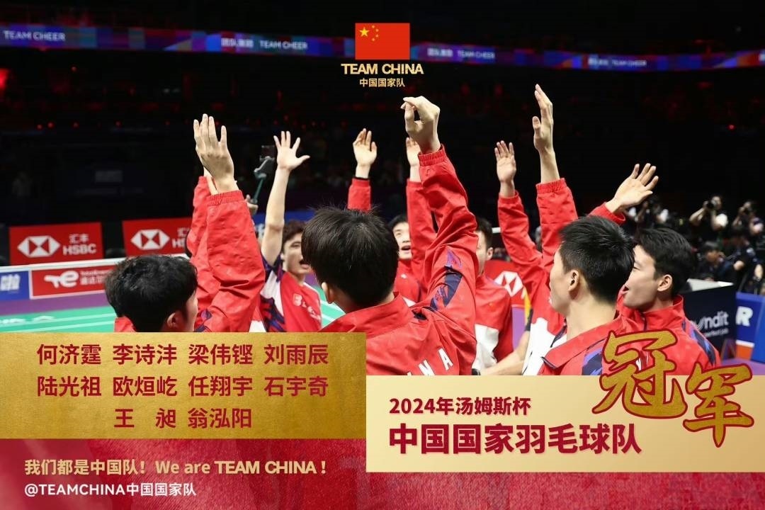 2024年湯尤杯賽5月5日在四川成都迎來收官日。在剛剛結(jié)束的湯姆斯杯決賽中,由石宇奇、梁偉鏗/王昶、李詩灃、何濟(jì)霆/任翔宇出場的中國男隊以總比分3-1戰(zhàn)勝印尼男隊,重奪冠軍!
