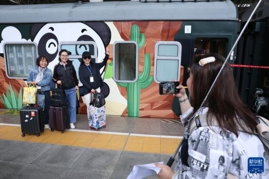 當日,一列搭載200余名游客的Y477次“多彩貴州號”貴陽——西雙版納——老撾“熊貓專列”從貴陽火車站正式啟程,開啟老撾異域風情游。據(jù)介紹,“熊貓專列”是由中國鐵路成都局集團有限公司運營的旅游列車,以熊貓為設計主題,通過多種形式展示地域文化與民族特色。