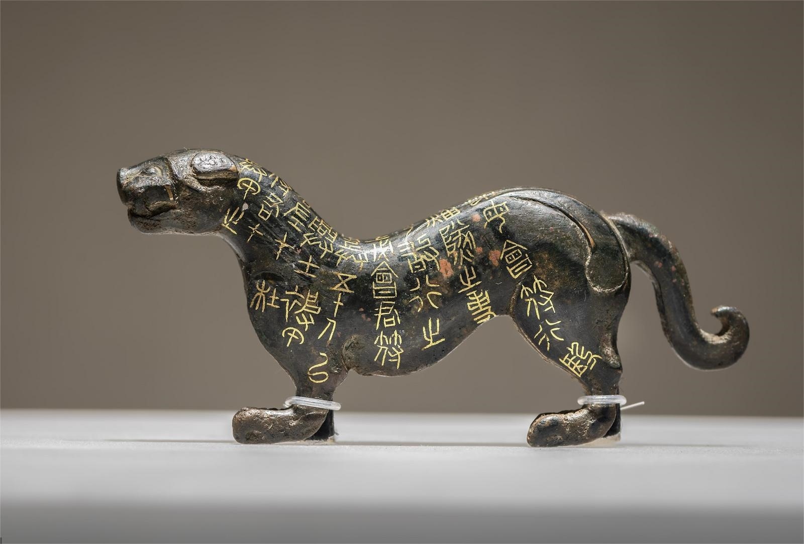 2300年前的戰(zhàn)國(guó)錯(cuò)金杜虎符,讓人穿越歷史,感受戰(zhàn)國(guó)時(shí)期沙場(chǎng)秋點(diǎn)兵的磅礴氣勢(shì)。陜西歷史博物館藏的錯(cuò)金杜虎符是一只霸氣虎,作行走狀,昂首,尾巴蜷曲?;⒎峡讨骸氨字?。右在君,左在杜。凡興士被甲,用兵五十人以上,必會(huì)君符,乃敢行之……”共9行40字,寫(xiě)明了虎符的用法和調(diào)兵范圍。使用的時(shí)候,虎符必須左右兩半嚴(yán)絲合縫地對(duì)合在一起才能起效,這也是“符合”一詞的來(lái)歷。
