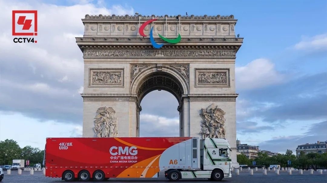 中央廣播電視總臺“中國紅”8K超高清轉播車,歷經(jīng)近2個月的旅程,在當?shù)貢r間7月16日,終于抵達巴黎法蘭西體育場。行駛途中,“中國紅”一路經(jīng)過凱旋門、埃菲爾鐵塔等巴黎地標性建筑,引發(fā)當?shù)孛癖姎g呼贊嘆。