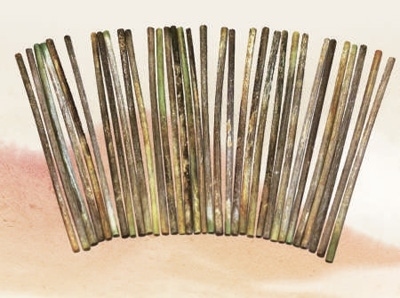 戰(zhàn)國(guó)時(shí)期中山國(guó)中山成公陪葬墓出土的骨算籌。河北博物院供圖
