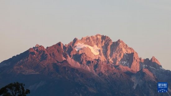 這是12月9日拍攝的玉龍雪山“日照金山”美景。