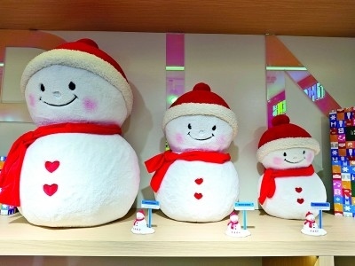 哈爾濱中央大街售賣(mài)的冰雪主題文創(chuàng)產(chǎn)品。