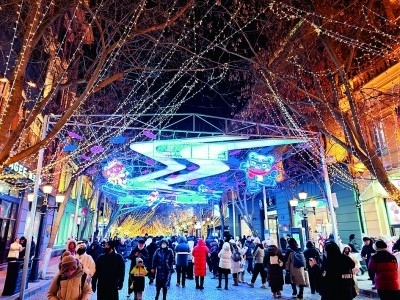 充滿(mǎn)節(jié)日氛圍的哈爾濱中央大街。