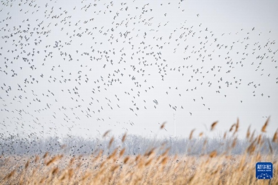 這是2月26日在天津七里海濕地自然保護(hù)區(qū)拍攝的“鳥(niǎo)浪”。