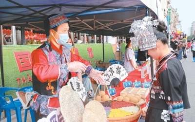 東興當?shù)孛癖娬诹私庀嚓P(guān)特色商品。