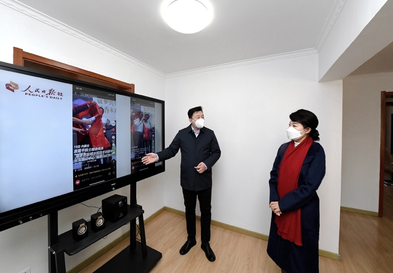 1月28日下午,王莉霞來到內(nèi)蒙古在線媒體文化發(fā)展有限公司,了解新浪內(nèi)蒙古運營中心情況和新媒體產(chǎn)品制作、發(fā)布等工作流程。記者韓卿立攝