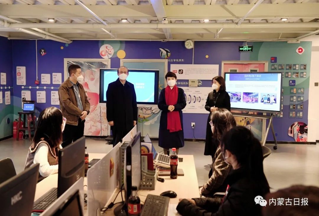 1月28日下午,王莉霞在抖音集團內(nèi)蒙古公司了解新媒體制作、審核、傳播等工作流程。記者韓卿立攝