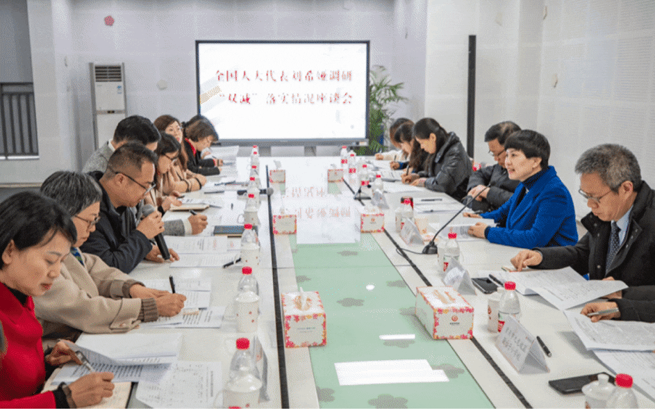 ↑2月24日,在謝家灣學(xué)校,劉希婭與部分家長代表座談交流,收集大家對“雙減”政策在落地執(zhí)行中的意見和建議。
