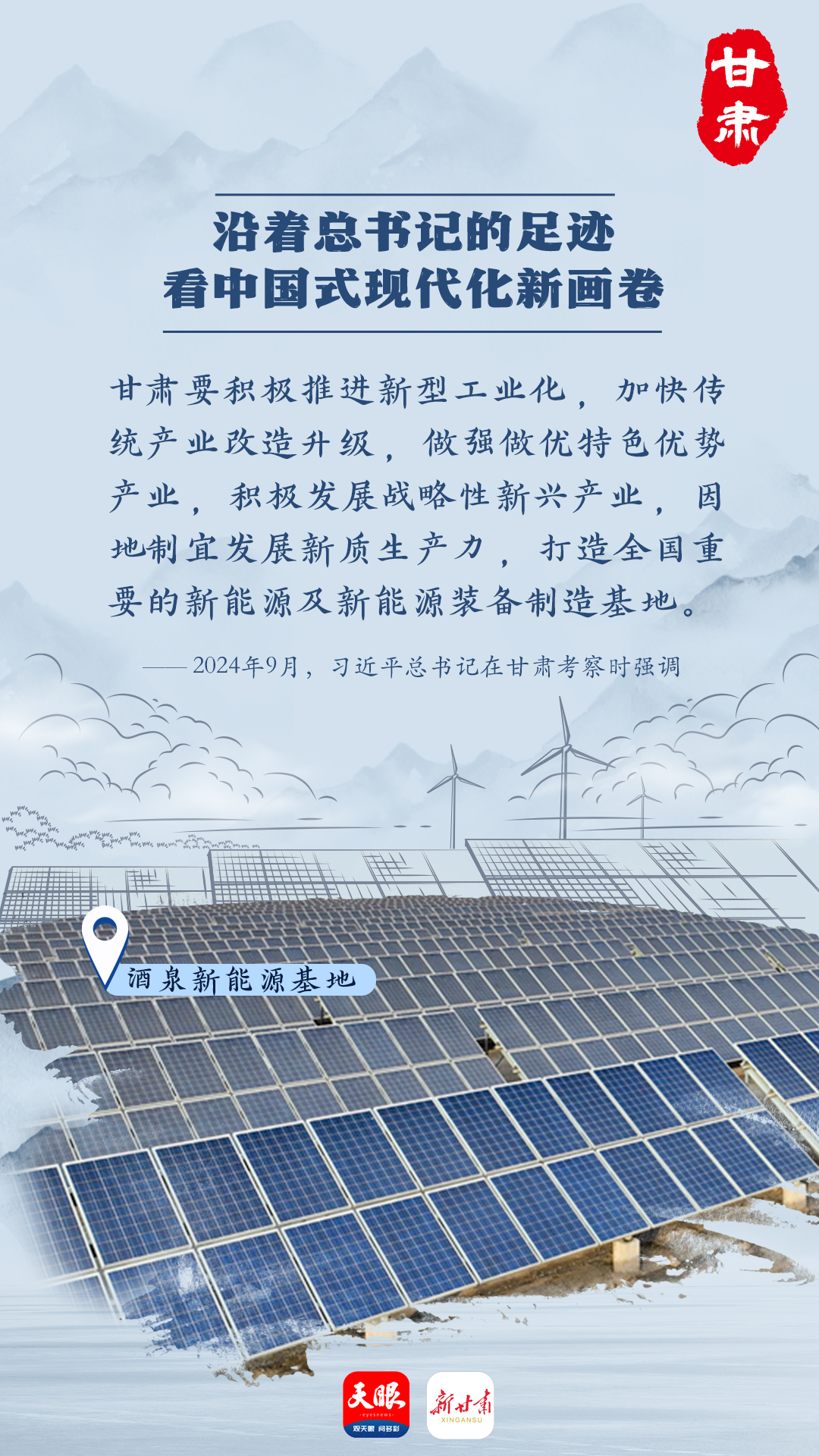 甘肅獲批建設(shè)國(guó)家新能源綜合開發(fā)利用示范區(qū),新增新能源裝機(jī)1258萬千瓦、總量達(dá)到6437萬千瓦,裝機(jī)和發(fā)電量占比均居全國(guó)第2位;新能源及新能源裝備制造業(yè)產(chǎn)值達(dá)到830億元;全省電源總裝機(jī)歷史性突破1億千瓦……如今,甘肅作為全國(guó)重要的新能源和新能源裝備制造基地正在崛起,“風(fēng)光”大省正向“風(fēng)光”強(qiáng)省加速跨越。
