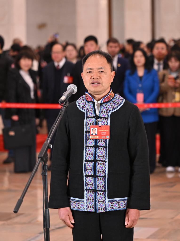 3月5日,第十四屆全國人民代表大會(huì)第四次會(huì)議首場“代表通道”集中采訪活動(dòng)在北京人民大會(huì)堂舉行。這是全國人大代表農(nóng)加貴接受媒體采訪?!?/span>