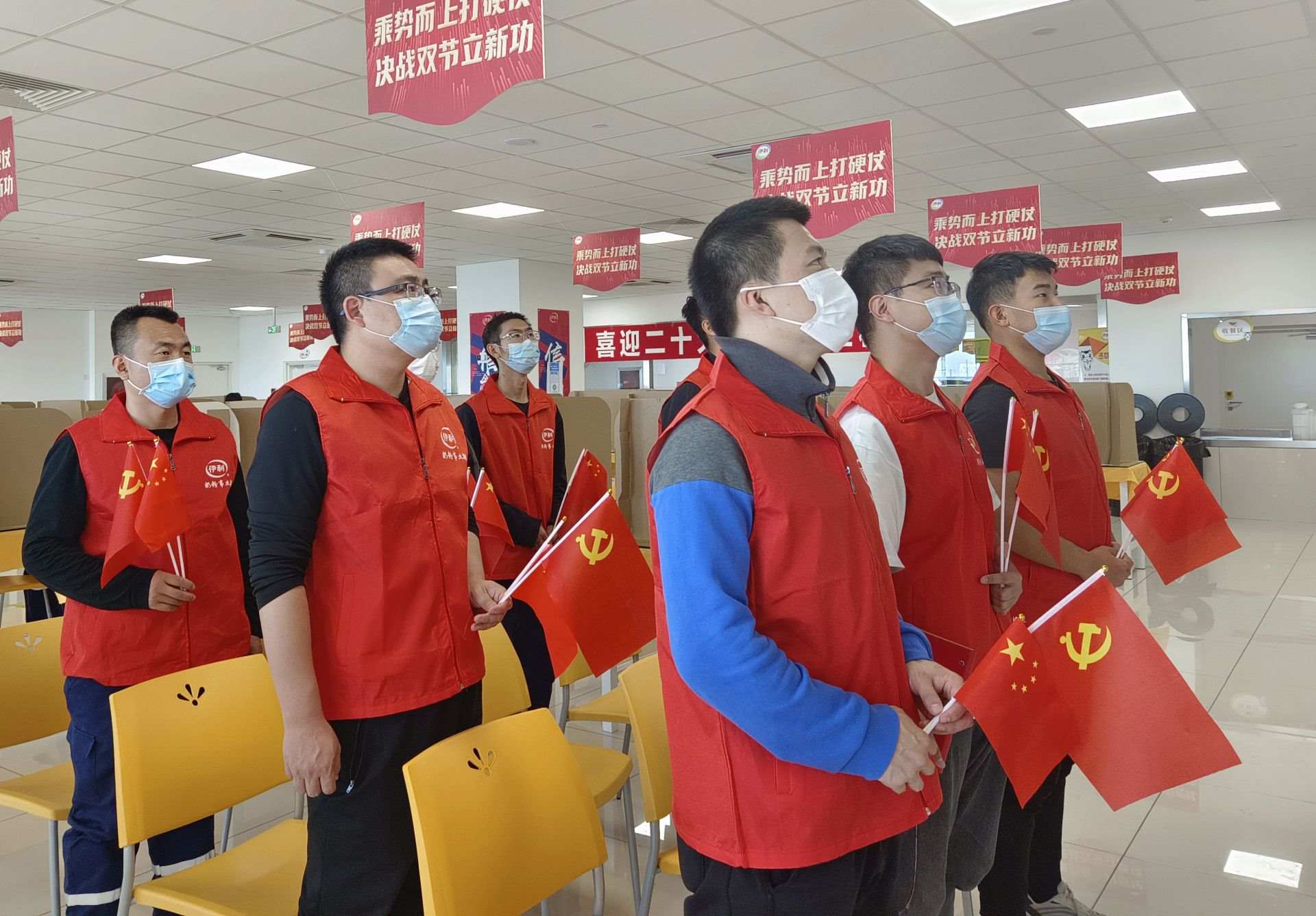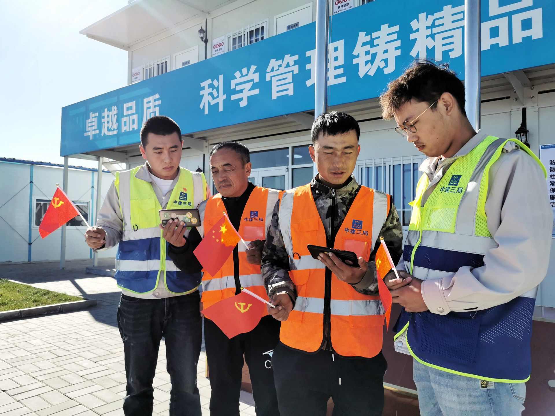 中建三局呼和浩特建設(shè)項(xiàng)目施工人員收看黨的二十大開幕會。曹楨攝
