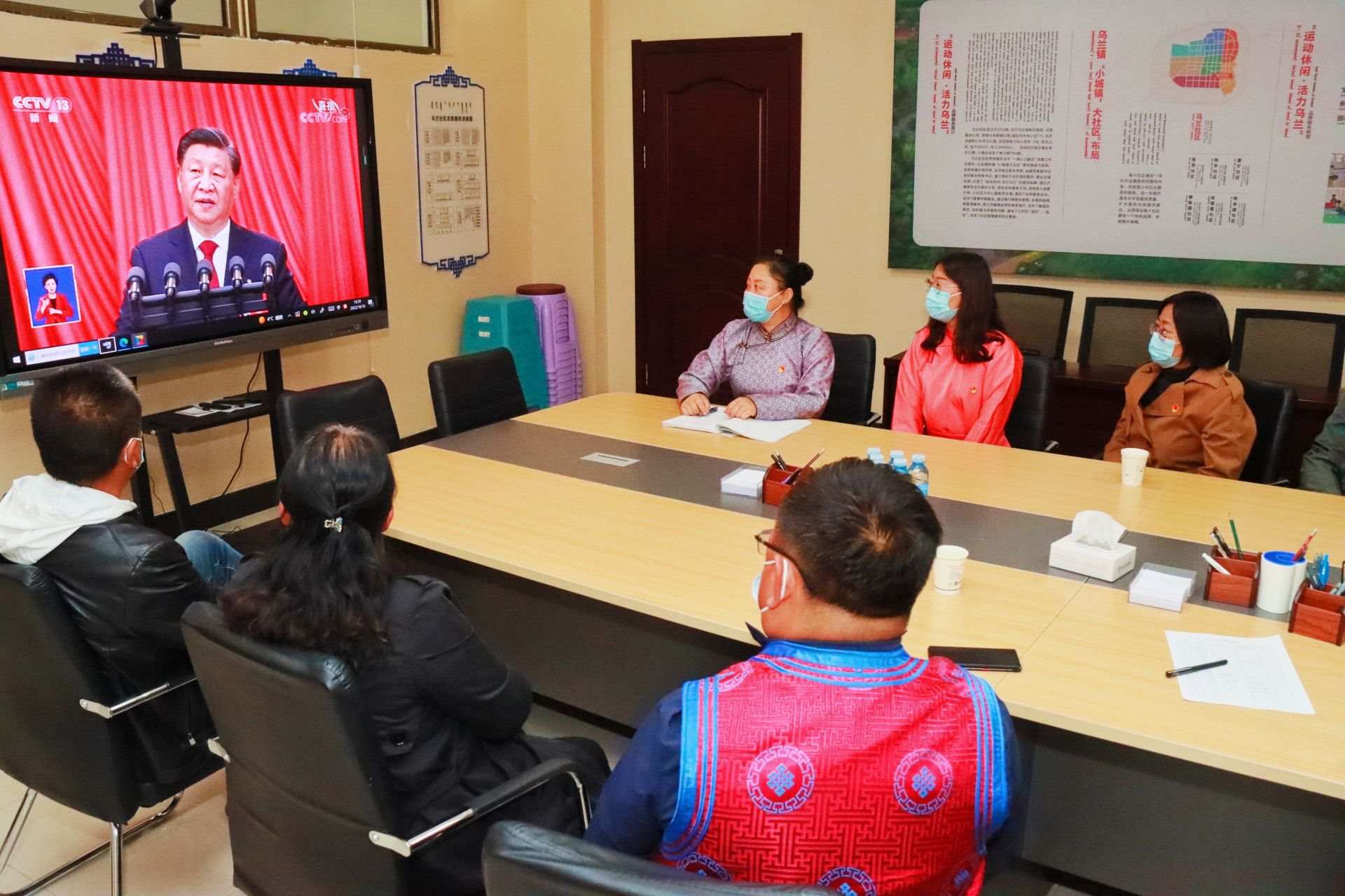 在內(nèi)蒙古,從黨政機(jī)關(guān)到園區(qū)企業(yè),從社區(qū)到學(xué)校......各地干部群眾或聚集在電視前,或通過電腦、手機(jī)等多種方式,認(rèn)真收聽收看了黨的二十大開幕會。(內(nèi)蒙古日報(bào)社融媒體記者 白雪)