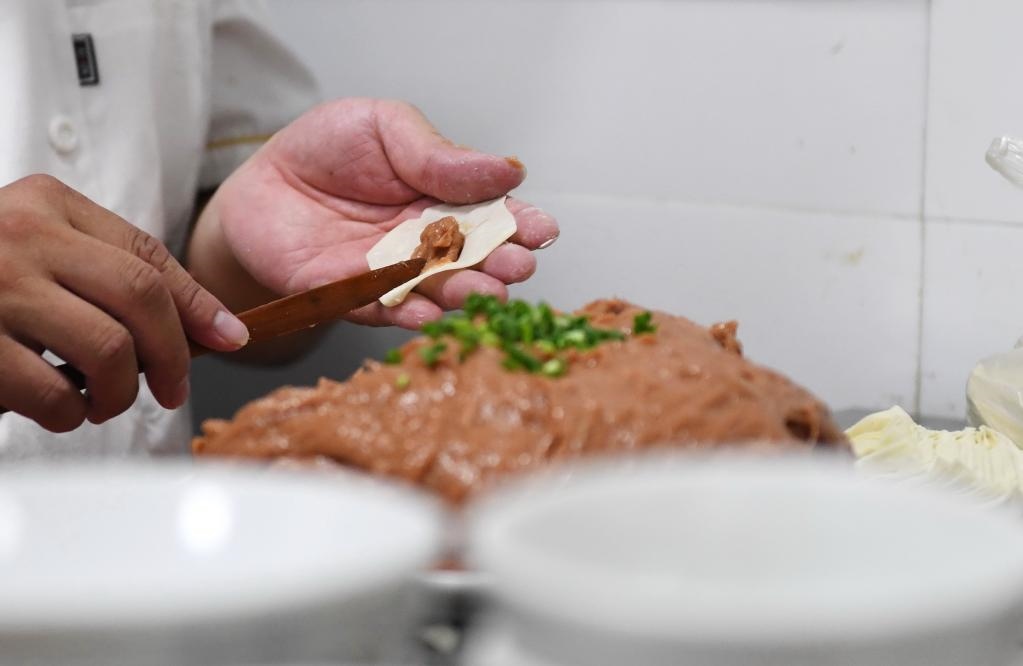 “以前手打三到四斤肉餡,要50多分鐘,現(xiàn)在用機(jī)器打餡,十分鐘就能完成,既提高了效率,也保證了肉餡的新鮮度和韌勁?!蓖跏I說?! ?/p>
