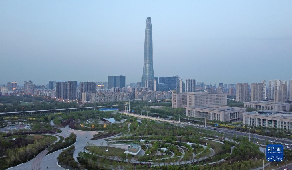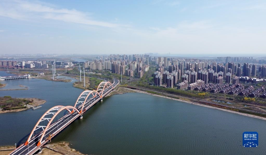 這是4月14日拍攝的中新天津生態(tài)城新貌(無人機照片)。新華社記者 趙子碩 攝