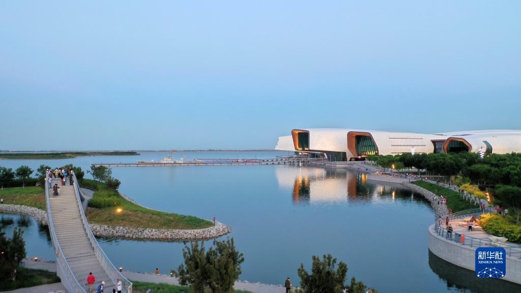 中新天津生態(tài)城南灣公園一景(2021年6月5日攝,無人機照片)。新華社記者 李然 攝