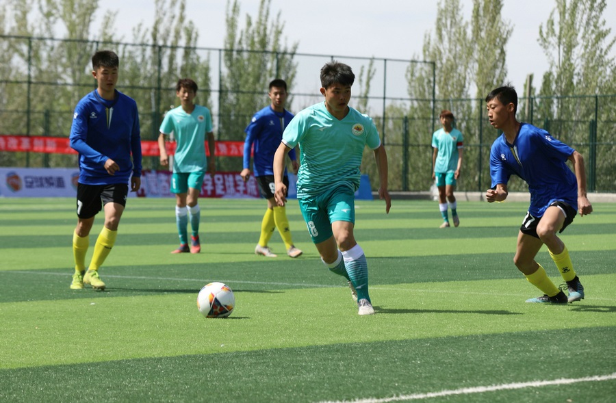 5月10日-17日,2021年內(nèi)蒙古自治區(qū)青少年足球聯(lián)賽暨青少年足球錦標(biāo)賽在內(nèi)蒙古師范大學(xué)足球?qū)W院舉行。此次比賽,共有來自全區(qū)各盟市的31支代表隊(duì)參賽,各代表隊(duì)以盟市為單位組隊(duì)報名,通過比賽,將進(jìn)一步探索主客場聯(lián)賽賽制,檢驗(yàn)各地區(qū)足球青訓(xùn)體系建設(shè)成效,活躍校園足球文化,以期發(fā)現(xiàn)和選拔更多優(yōu)秀足球運(yùn)動員。圖為比賽揭幕戰(zhàn)現(xiàn)場,烏海代表隊(duì)對陣鄂爾多斯代表隊(duì)。